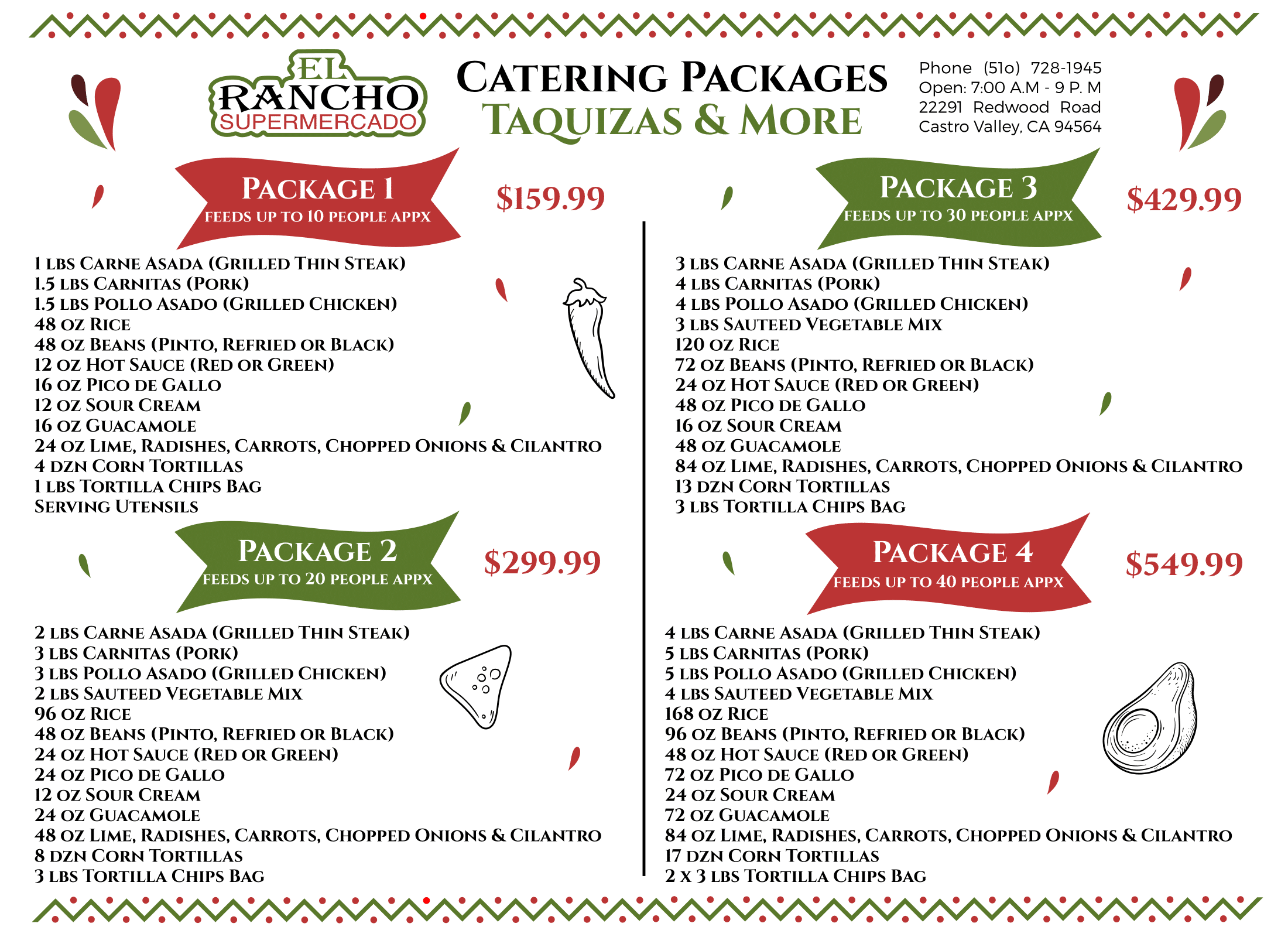 Catering your next event, party or business meeting has never been easier. Simply select from our menu below your protein choices, sides, salsa and gives us your head count. We can price your event per person or we can customize your order by the pound. Our most popular items are our Taco Bar’s. See some of our pictures from our slide show.